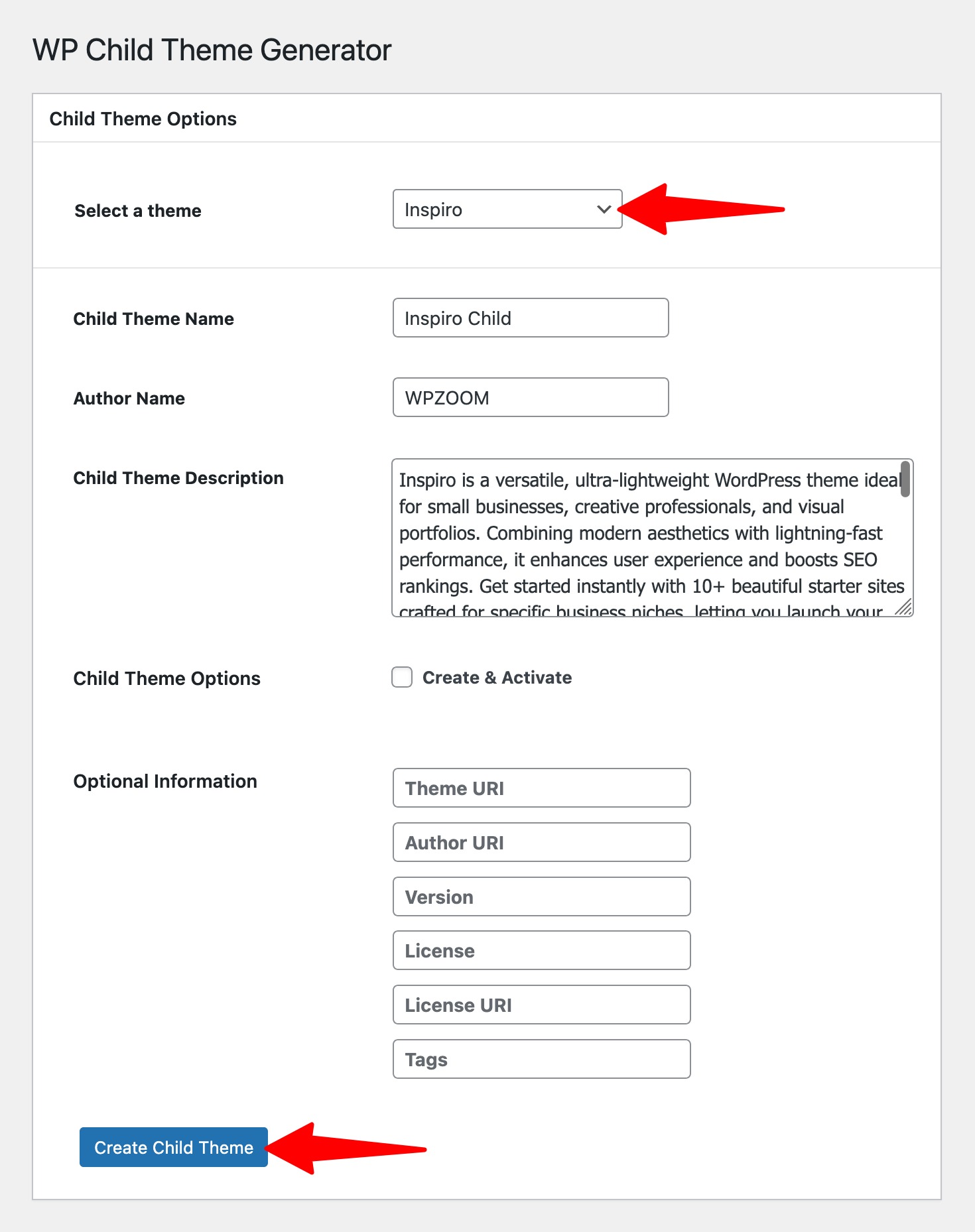 The WP Child Theme Generator plugin allows you to quickly generate a child theme without writing any code. It’s a simple solution for beginners or those looking for a fast setup.