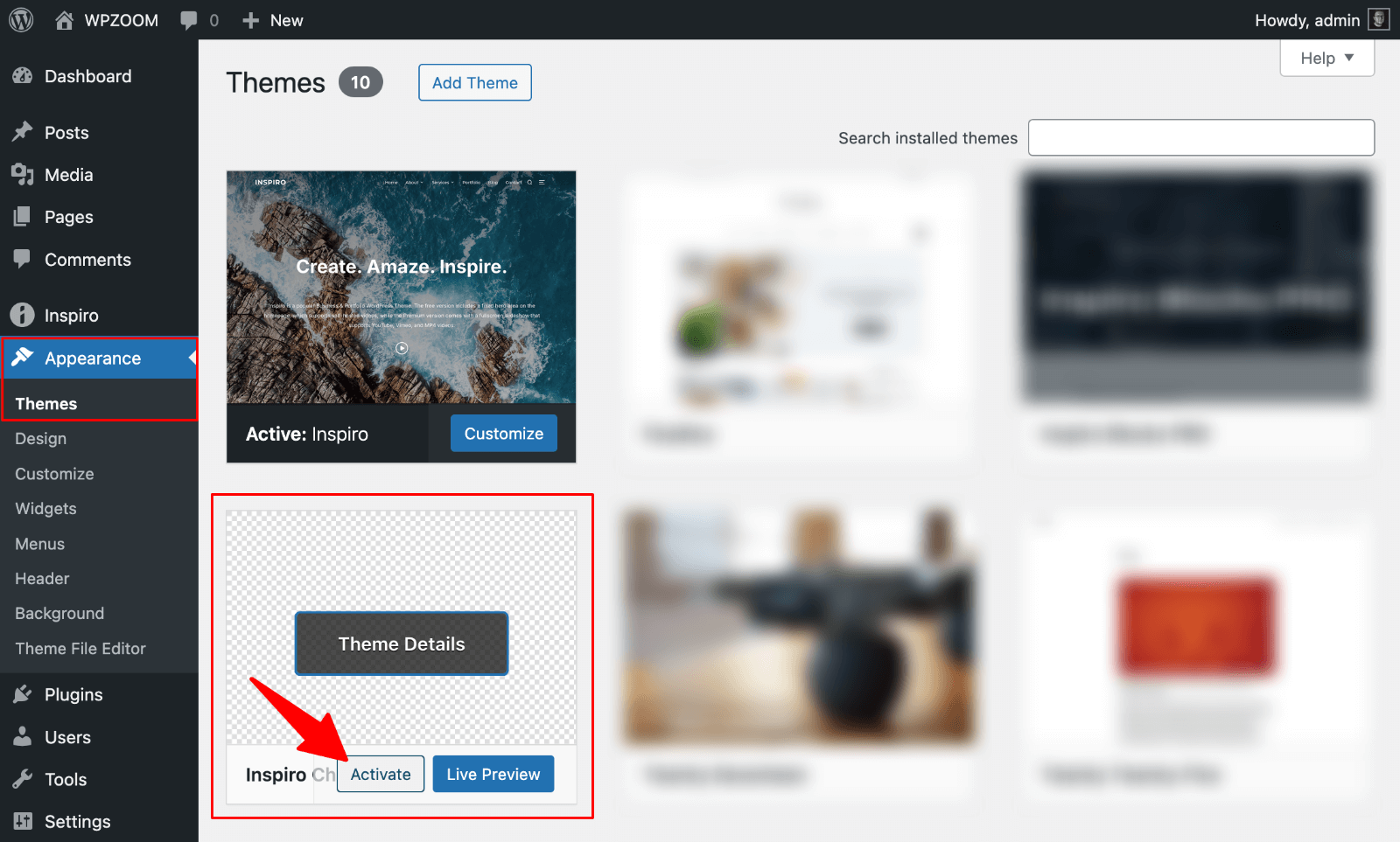 You should now see your child theme listed. Click Activate to make it the active theme.