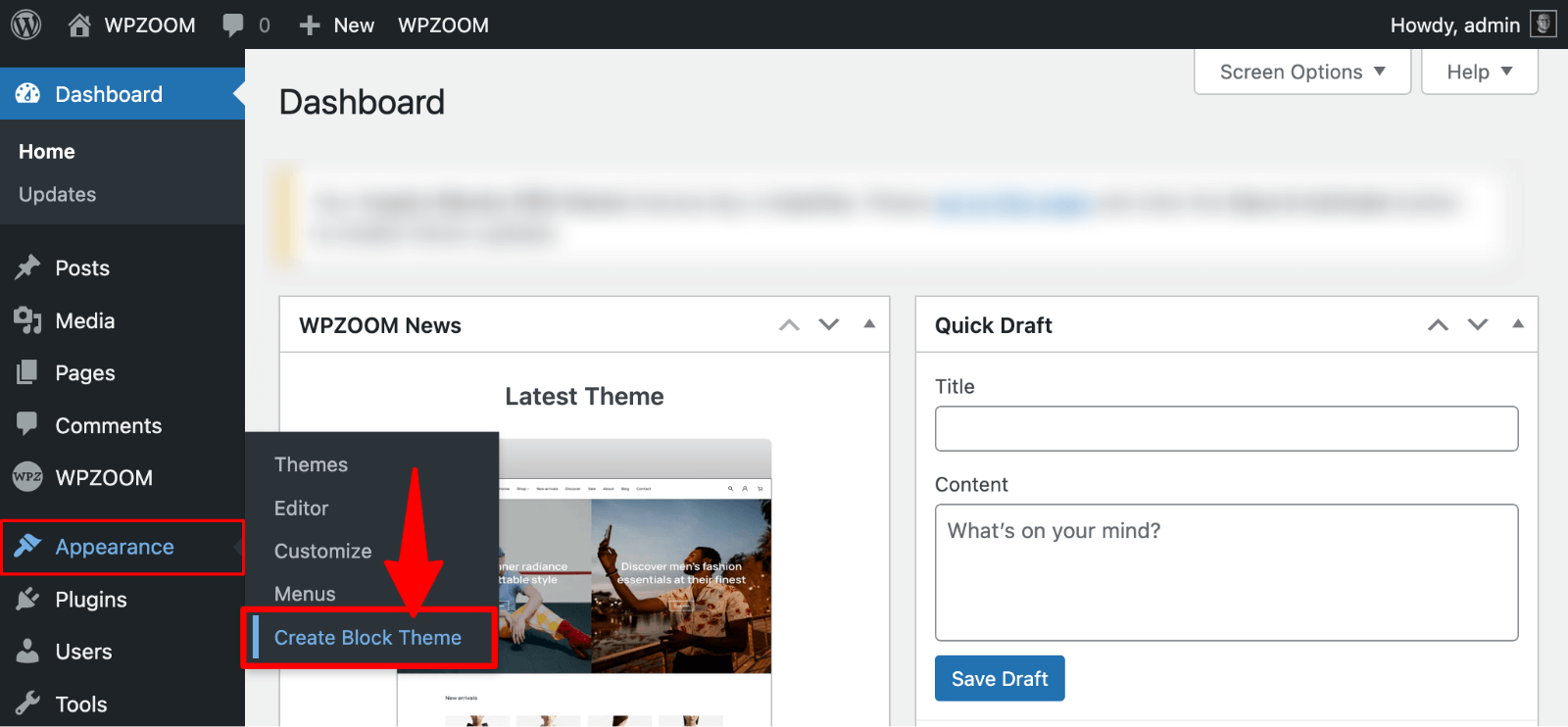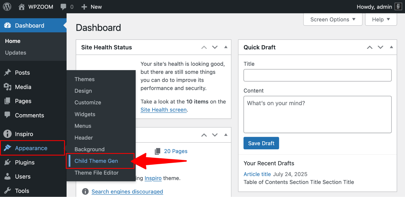Navigate to Appearance > Child Themes in your WordPress dashboard.